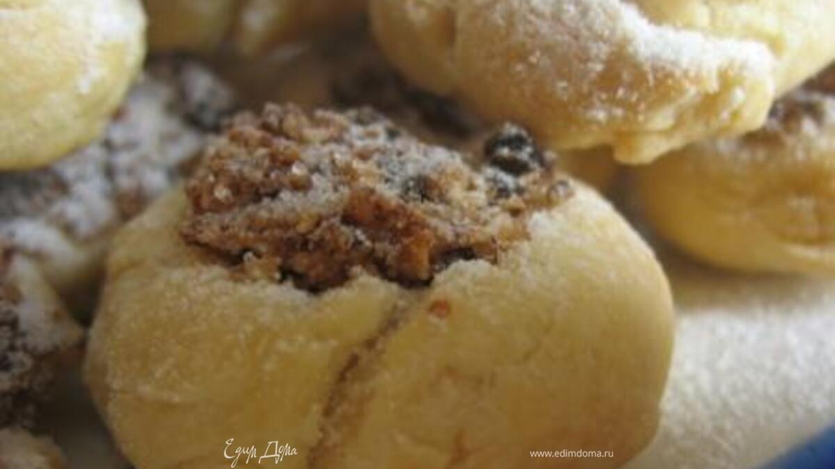 - Шаг 1Муку просеять, добавить сливочное масло, воду, вымесить тесто. Сформовать шарики диаметром 3-4 см, в середине каждого пробкой сделать углубление. В блендере измельчить все компоненты для начинки, добавить корицу, масло, сахар. Заполнить углубления в печенье. Выпекать 15 минут при температуре 200. Готовое печенье посыпать сахарной пудрой.