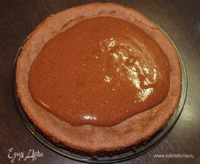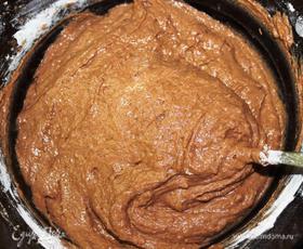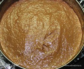 Выливаем тесто в разъемную форму, дно которой застелено бумагой для выпечки и разравниваем поверхность. Ставим в духовку на среднюю полку на 1 час. При выпечке пирог немного поднимется куполом, но при остывании он осядет, образуя ровную поверхность. Достаем из духовки и полностью остужаем.