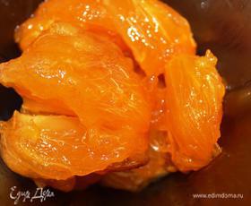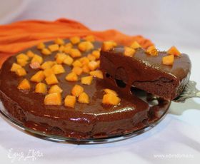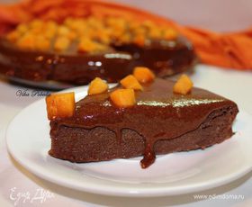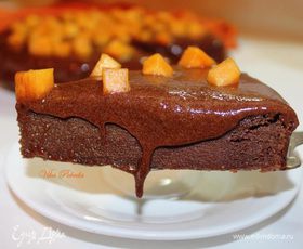 Распределяем соус по поверхности остывшего пирога, украшаем для яркости нарезанной кубиками хурмой и можем подавать!!! Но лучше, как и любой влажный пирог, выдержать его в холоде какое-то время, так вкус станет ярче и богаче!
