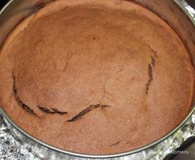 Освободим от боковин формы, пройдясь ножом по диаметру, снимем бумагу, перевернув пирог.
