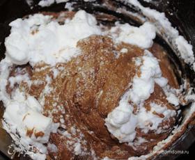 Взбиваем белки со щепоткой соли до мягких пиков и аккуратно вводим их в тесто.