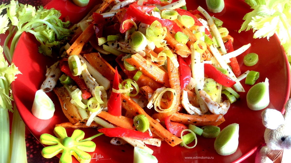 Куриный салат с запеченной морковкой