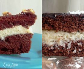 Продолжая готовиться к Новому Году, я нашла очень простой и популярный в интернете рецепт торта "Баунти" и с удивлением обнаружила, что на "Едим Дома" нет такого варианта. А ведь это нежнейший шоколадный бисквит с тооолстым слоем сочной кокосовой начинки - просто райское наслаждение для кокосоманов