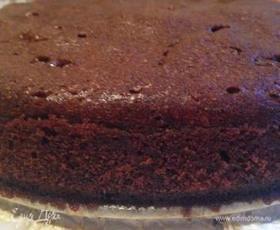 Выложить тесто в смазанную маслом форму и выпекать в разогретой до 180-200 градусов духовке около 30 мин. до сухой палочки. Готовый бисквит остудить в форме, провести ножом по краю и вытащить. Разрезать вдоль на 2 коржа. Пропитать каждый корж сливками (можно кокосовым молоком, можно любым сиропом или медовой водичкой).