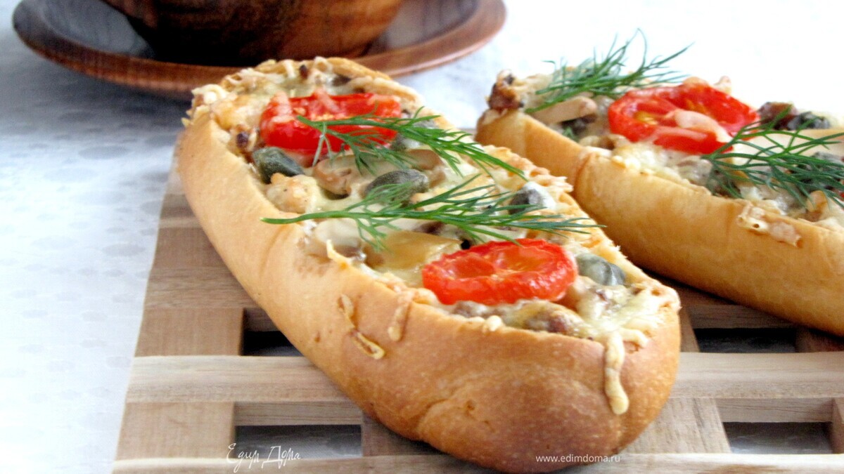 Мини-багеты, фаршированные курицей и грибами