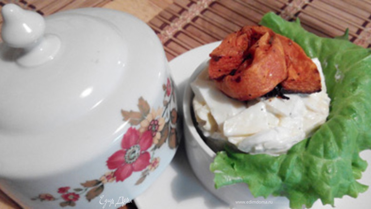 - Шаг 3Этот салат можно порционно выложить на тарелки, использовав для формирования башенки кондитерское кольцо. Если на кухне нет такого девайса, смастерите его из пластиковой бутылки подходящего диаметра, обрезав дно и верхушку, оставив только прямую среднюю часть. Know How: можно совершенно не заморачиваться со слоями, а просто перемешать все ингредиенты и заправить их майонезом! Иногда я так и делаю без всяких угрызений совести ))) P. S. Порыскав по просторам интернета, обнаружила, что многие во французский салат с яблоками кладут тертую сырую морковь. По-моему, неплохо.