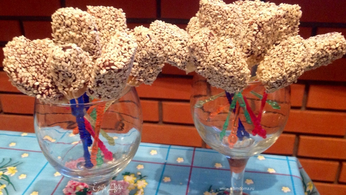 Потом обмакиваем в кунжут, хорошенько со всех сторон.