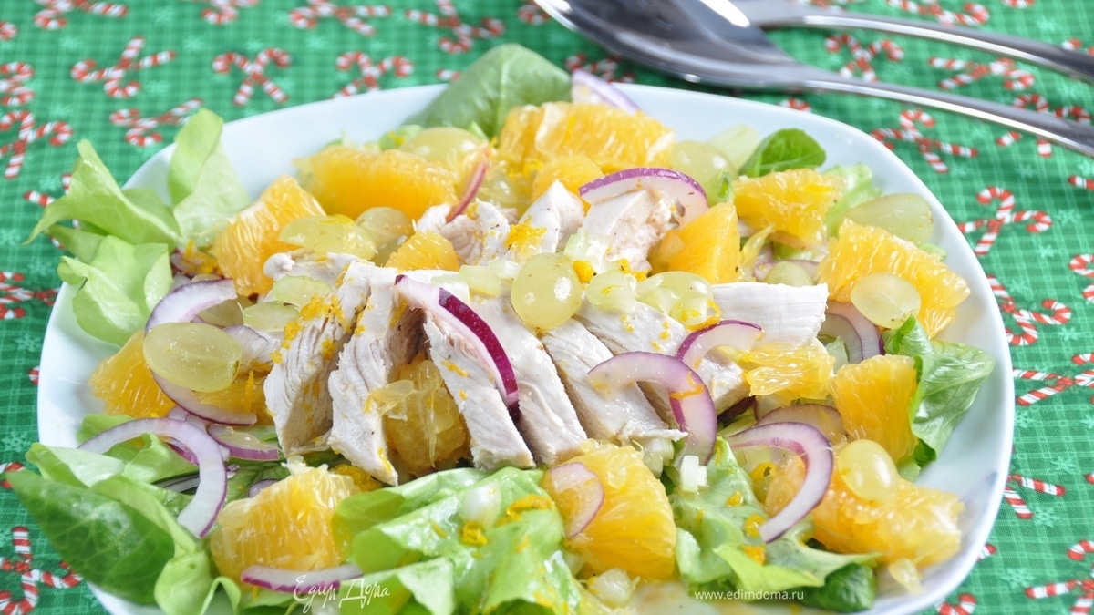 Салат из курицы с сельдереем, апельсином и виноградом