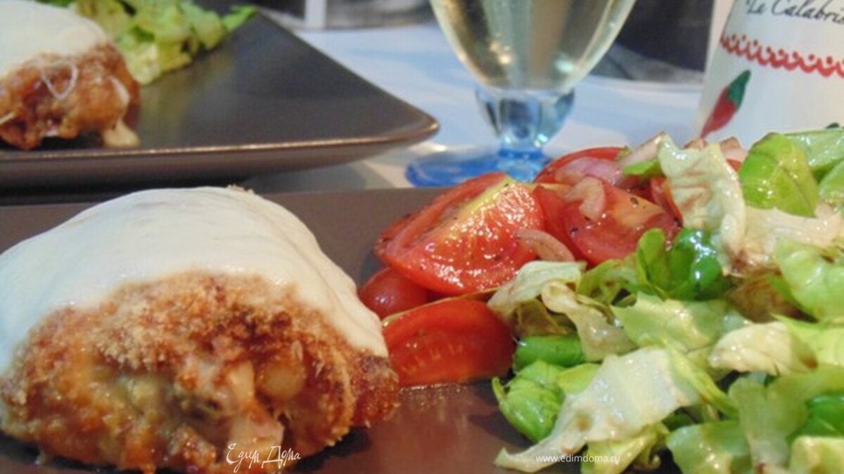 Из таких незамысловатых продуктов получается такое вкусное, сочное мясо курицы с хрустящей пармезановой корочкой и нежной тягучей моцареллой.