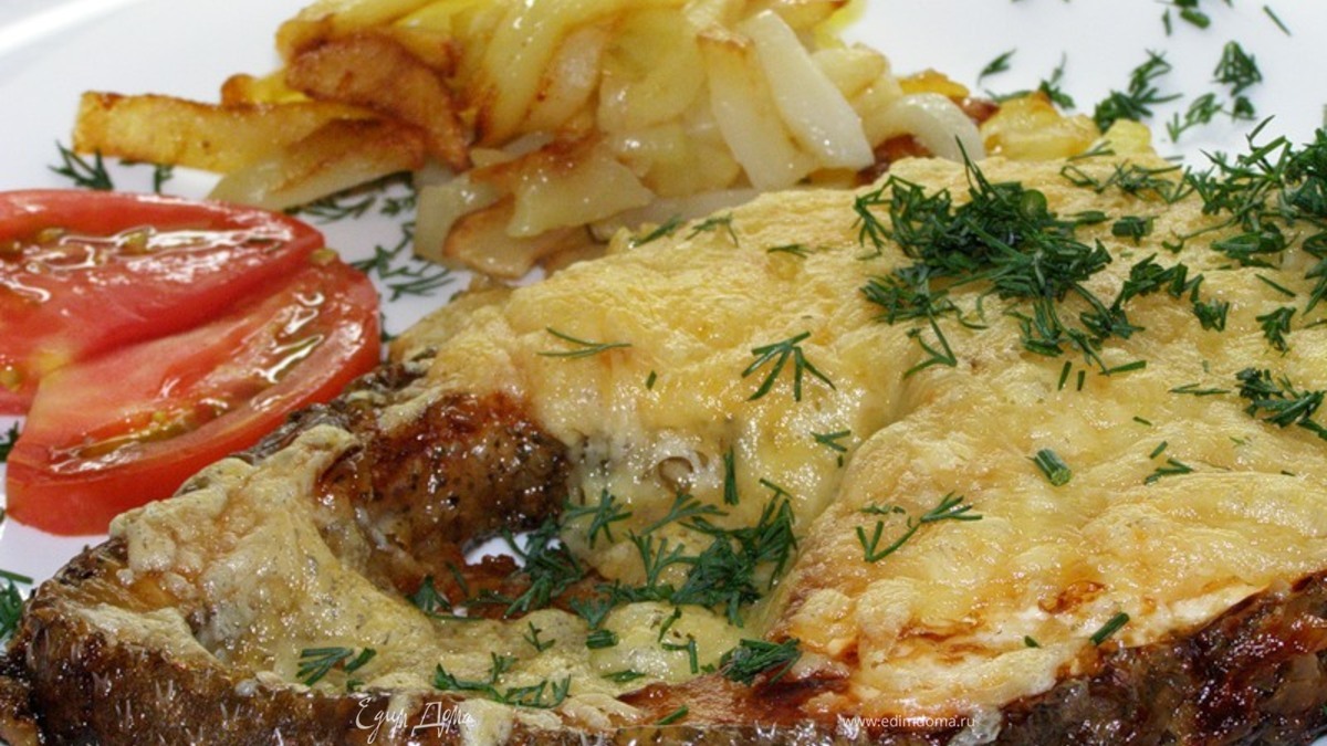 - Шаг 1Филе рыбы порезать кубиками,посолить, поперчить и уложить на смазанную маслом сковороду. Сверху рыбу накрыть картофелем,нарезанным соломкой. посолить,поперчить,посыпать мукой, полить бульоном (рыбным или просто налить полстакана воды),посыпать сухарями,накрыть крышкой, и отправить в духовку на 20-30 минут, при температуре 170-200 градусов. Перед подачей на стол посыпать сыром и петрушкой.