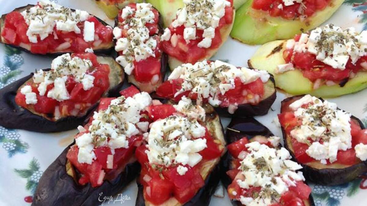 Баклажаны и кабачки-гриль с помидорами и сыром фета