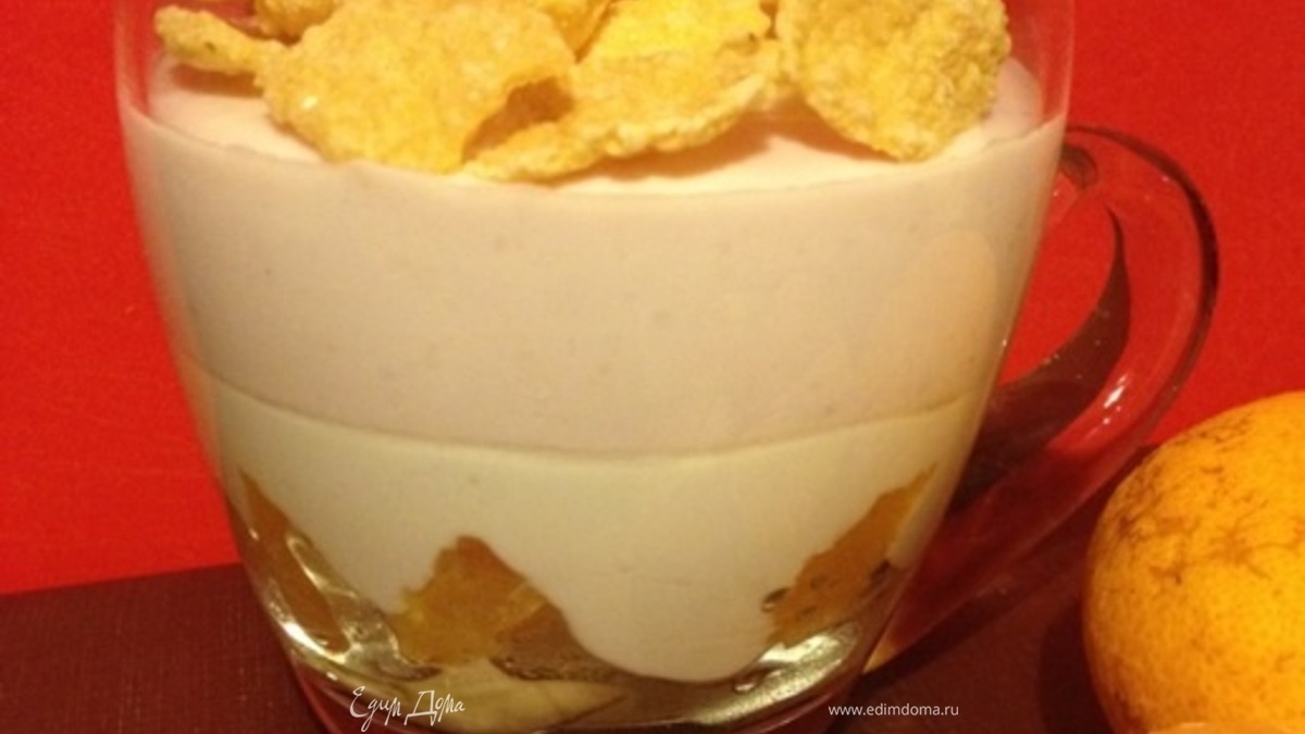 Посыпать тертым шоколадом или глазурованными кукурузными хлопьями. Приятного аппетита!