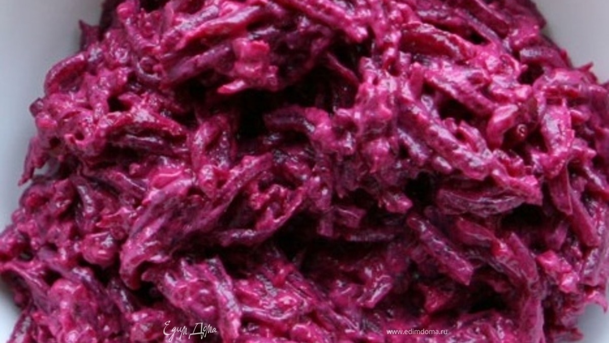 - ПодготовкаНарезаем свеклу или натираем на терке, добавляем семечки, сметану и чеснок.