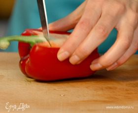 Почистить перец, разрезать его на две половинки