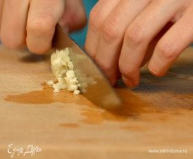 Чеснок и зелень мелко порубить.