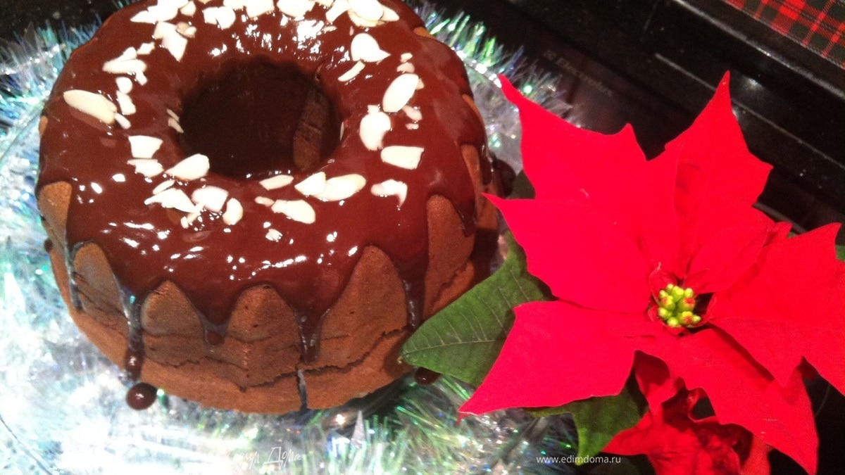 Покройте кекс шоколадом и посыпьте миндальными лепестками. Приятного аппетита!