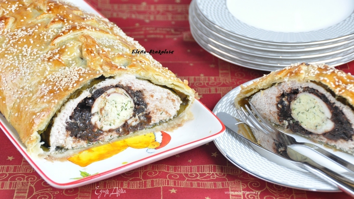 Куриный рулет с черносливом в слоеной шубке