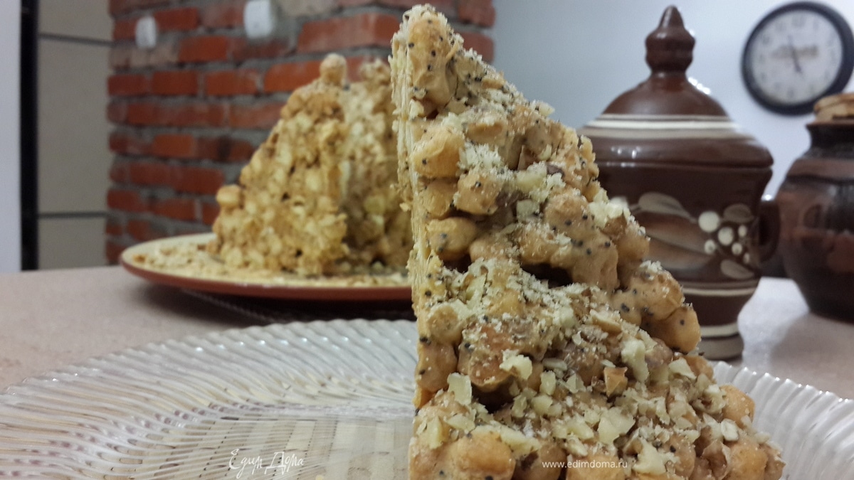 - Шаг 5Для крема взбиваем масло со сгущёнкой)и добавляем орехи и мак) Перемешиваем с тестом, формируем горку и в холодильник) Рекомендую подождать сутки) Вкусного вам)