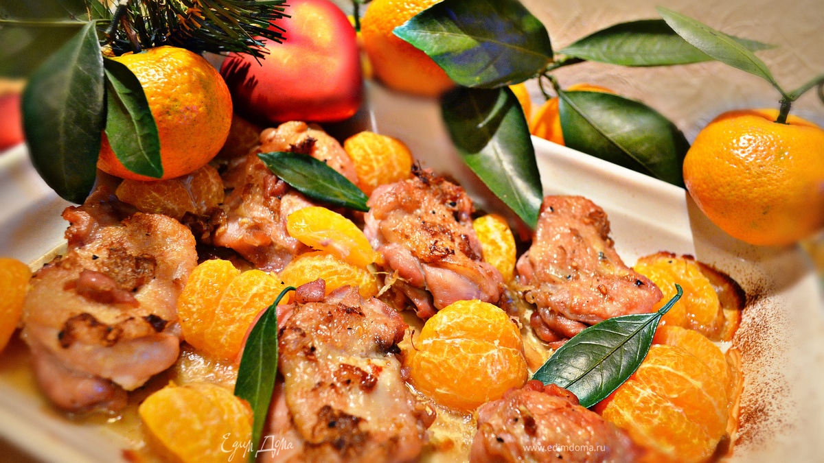 Курица, запеченная с мандаринами