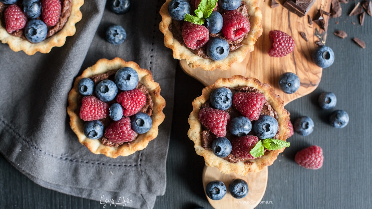 Тарталетки с шоколадным кремом и ягодами
