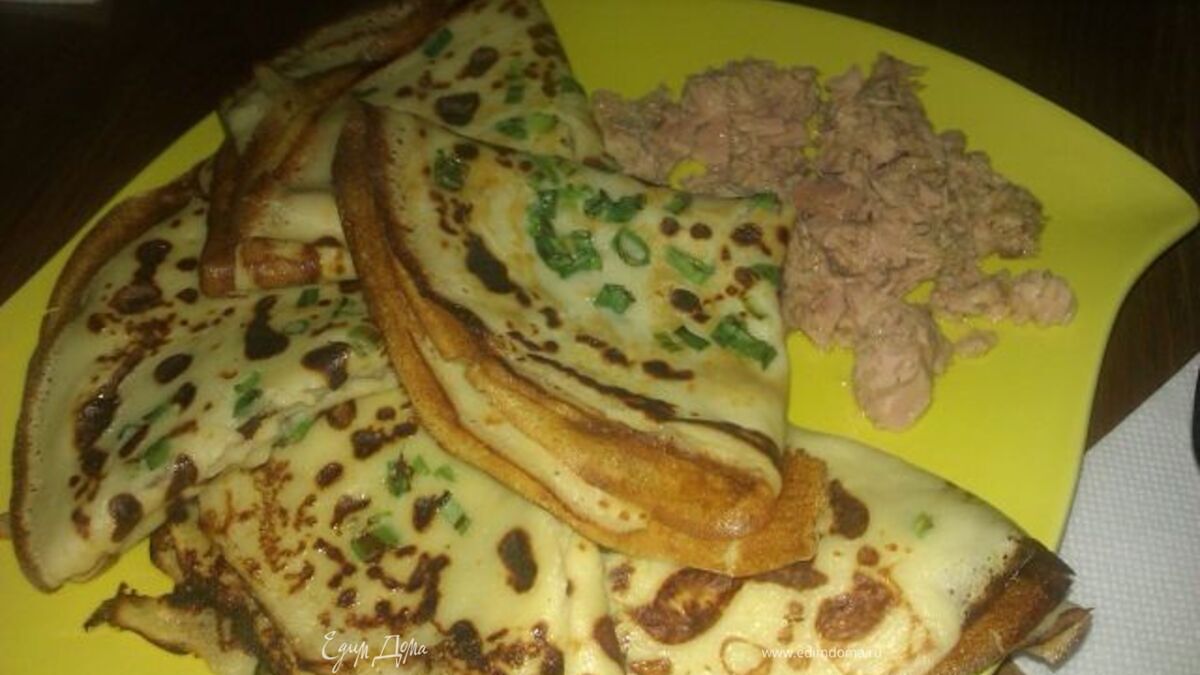 - Шаг 2Жарим на небольшой раскаленной сковороде, с добавлением оливкового масла, небольшие тонкие блинчики (если сковорода большая, тогда разливаем тесто не на всю сковороду, иначе трудно будет перевернуть) У меня как раз маленькая сковородочка есть))) Эти блинчики надо зажаривать - иначе трудно перевернуть - рвутся. Они очень нежные! При желании,можно одну сторону посыпать измельченной зеленью. Приятного аппетита!