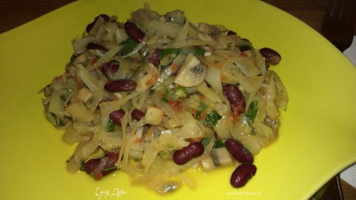 - Шаг 2Фасоль без жидкости добавляем к капусте, снова все солим, аккуратно перемешиваем, тушим ещё 5 мин. Зеленый лук, петрушку и чеснок мелко рубим, смешиваем и отправляем к капусте. Все перемешиваем, выключаем огонь, даем немного отдохнуть и подаем на стол. Приятного аппетита!