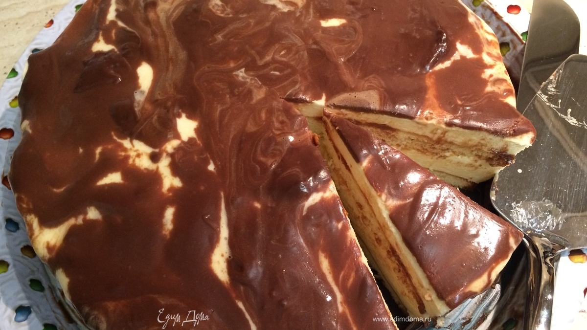 Мраморного эффекта у меня не получилось (см. фото), но торт ОЧЕНЬ вкусный! Спасибо! 💖