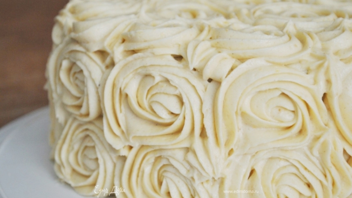 А это праздничный торт к приезду любимого мужа. Взбиваем сливки, отправляем в кондитерский мешок со специальной насадкой и украшаем торт. В каждый слой крема можно добавить краситель и создать свой букет роз :)