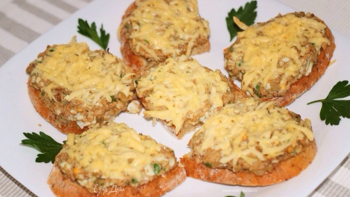 Смешать сайру, яйца, лук, рубленую зелень и измельченный чеснок, посолить, поперчить, заправить майонезом. - Шаг 4Хлеб намазать тонким слоем сливочного масла и сверху распределить подготовленную начинку, посыпать натертым сыром. Отправить в разогретую до 180 градусов духовку на 10-13 минут.