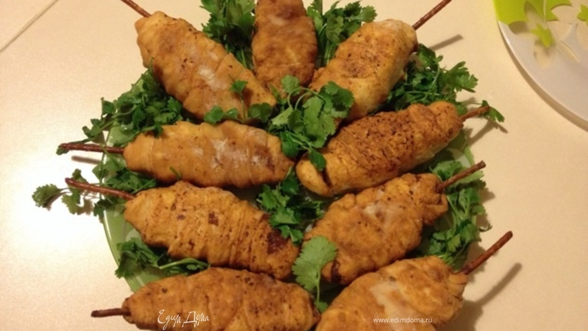 Затем полоской теста обкрутить вокруг фарша, начиная со стороны соломки. - Шаг 4