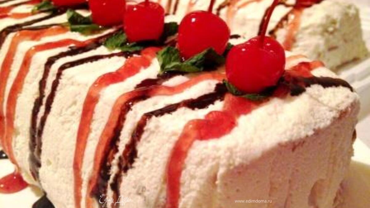Перед подачей вынуть торт из холодильника, развернуть края фольги, накрыть ровной тарелкой или досточкой, перевернуть и снять фольгу. Украсить по желанию (у меня шоколадный и вишневый топинг, коктейльная вишня и листики мяты). - Шаг 7
