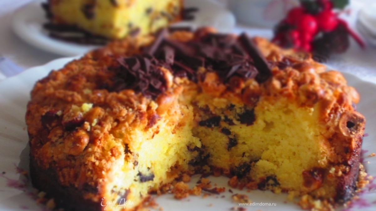 Творожный пирог с черносливом и карамелизированным фундуком