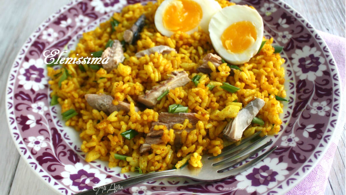 Яйца очистите от скорлупы, разрежьте вдоль пополам. Жареный рис приправьте солью и перцем, положите к нему кусочки скумбрии. Подавайте с яйцами. Мне понравилось это необычное сочетание, поэтому рекомендую и вам!