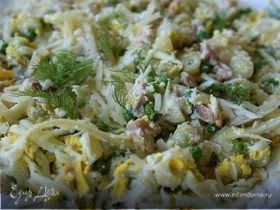 Совсем недавно нашла рецепт в интернете, легкий и в тоже время сытный салатик. Нежная кислинка придает ему шарма.