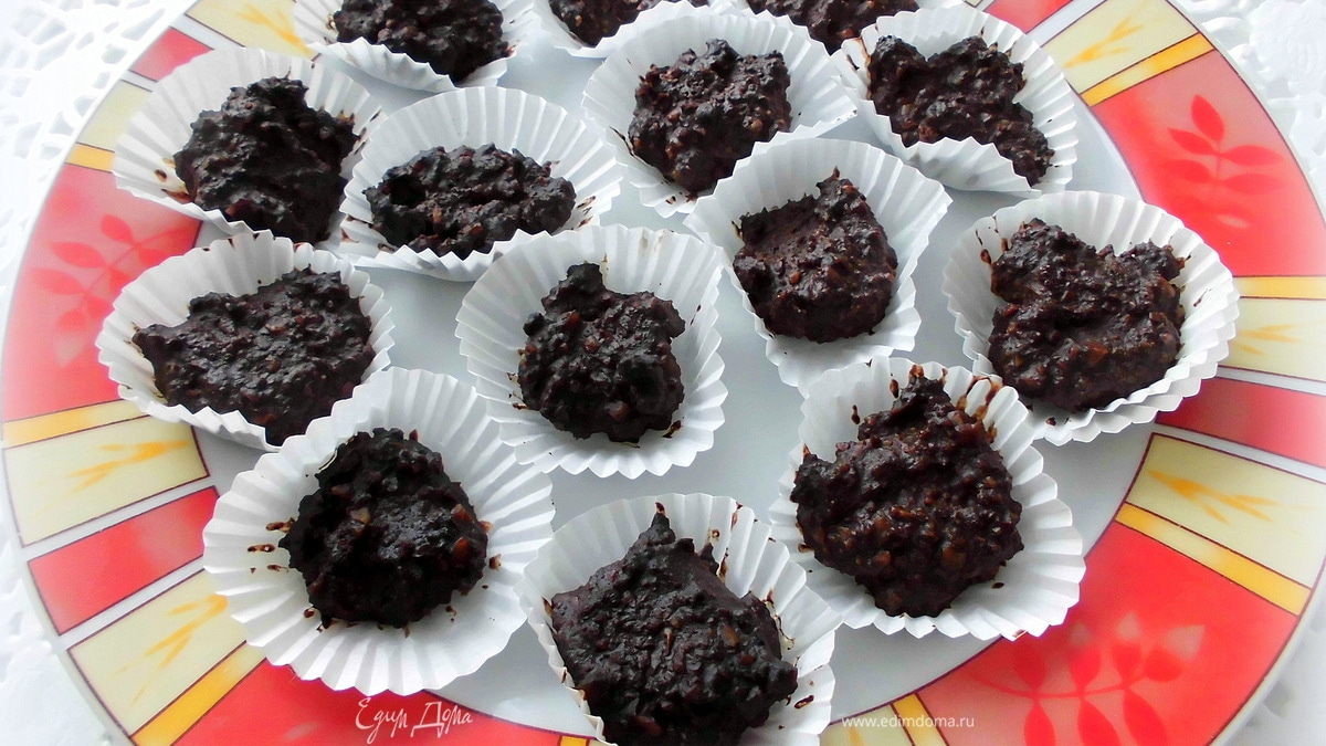 Выложить шоколадно-ореховую массу в бумажные формочки для конфет. Поставить в холодильник или морозилку, чтобы они застыли. Приятного аппетита!