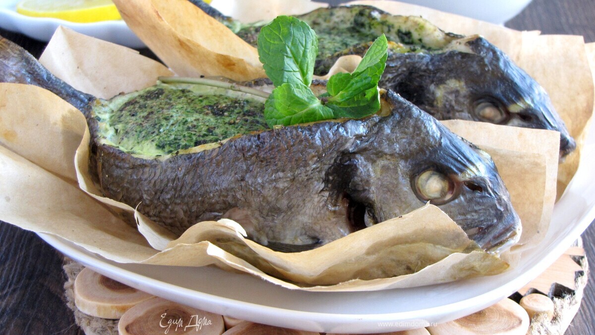 Дорада с начинкой из шпината