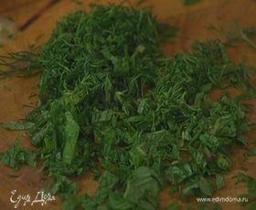 Укроп и мяту мелко порубить.