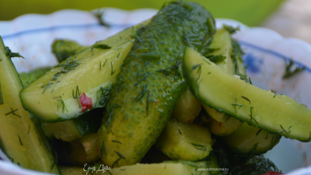 - ПодготовкаБерём огурчики, разрезаем их на две или четыре части, складываем в обыкновенный пакет.