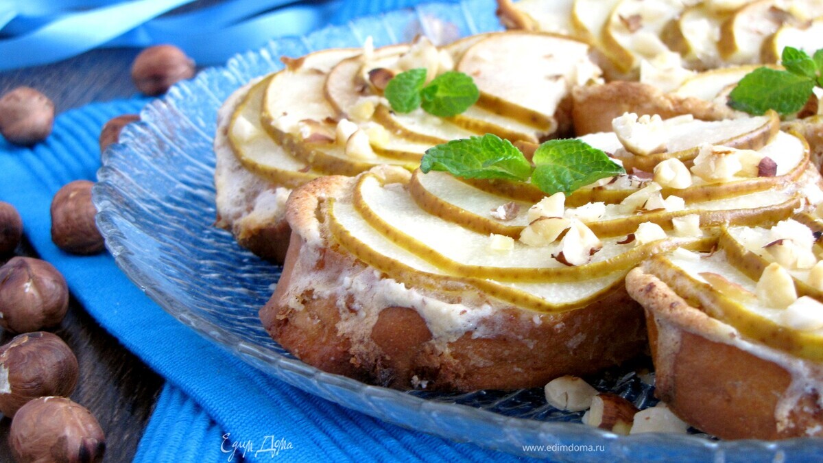 Такие десертные гренки можно приготовить и с яблоками. Фундук в этом случае хорошо заменить миндалем.