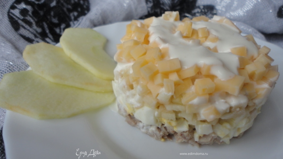 Салат с ягнятиной и яблоком со сметанной заправкой