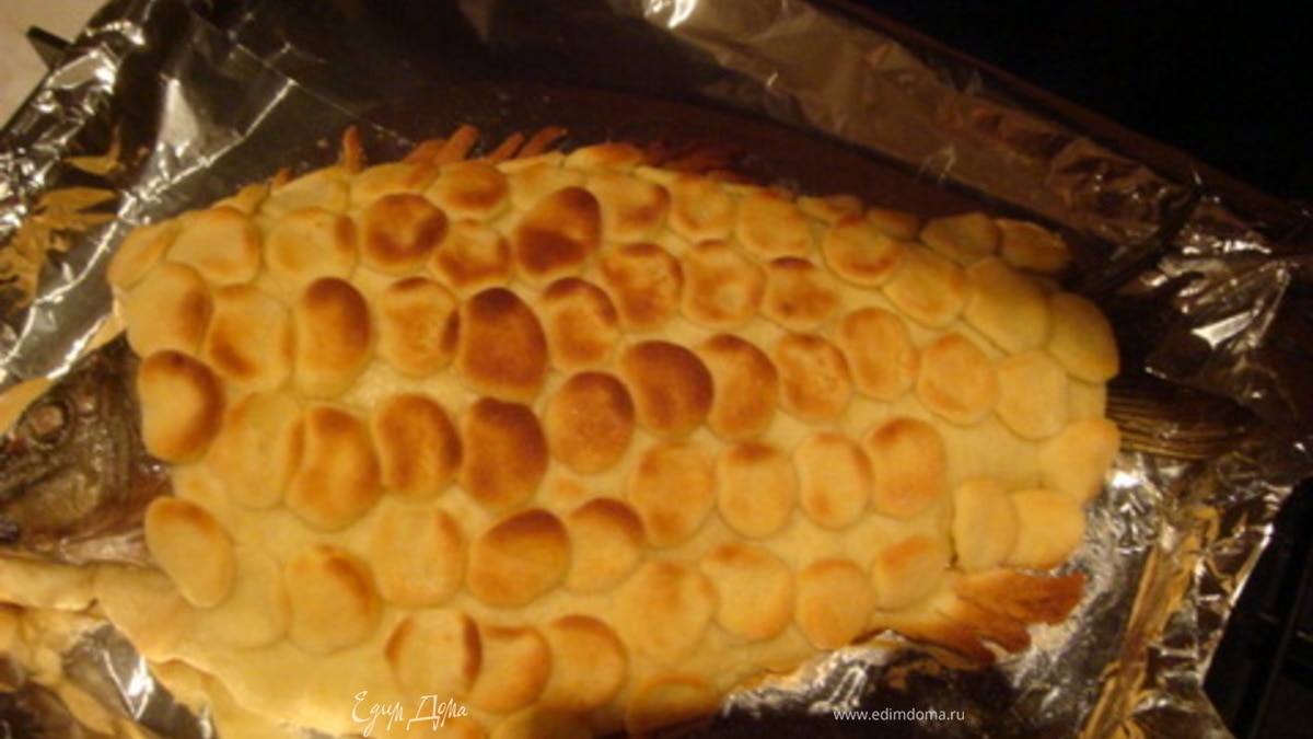 Смазать рыбку сливочным маслом 1 ч.л. и выложить чешуйки с хвоста, украсить, смазать еще раз сл.маслом (можно воспользоваться яйцом взбитым). Поставить в теплую духовку 40 гр. на расстойку на 25 минут. - Шаг 6
