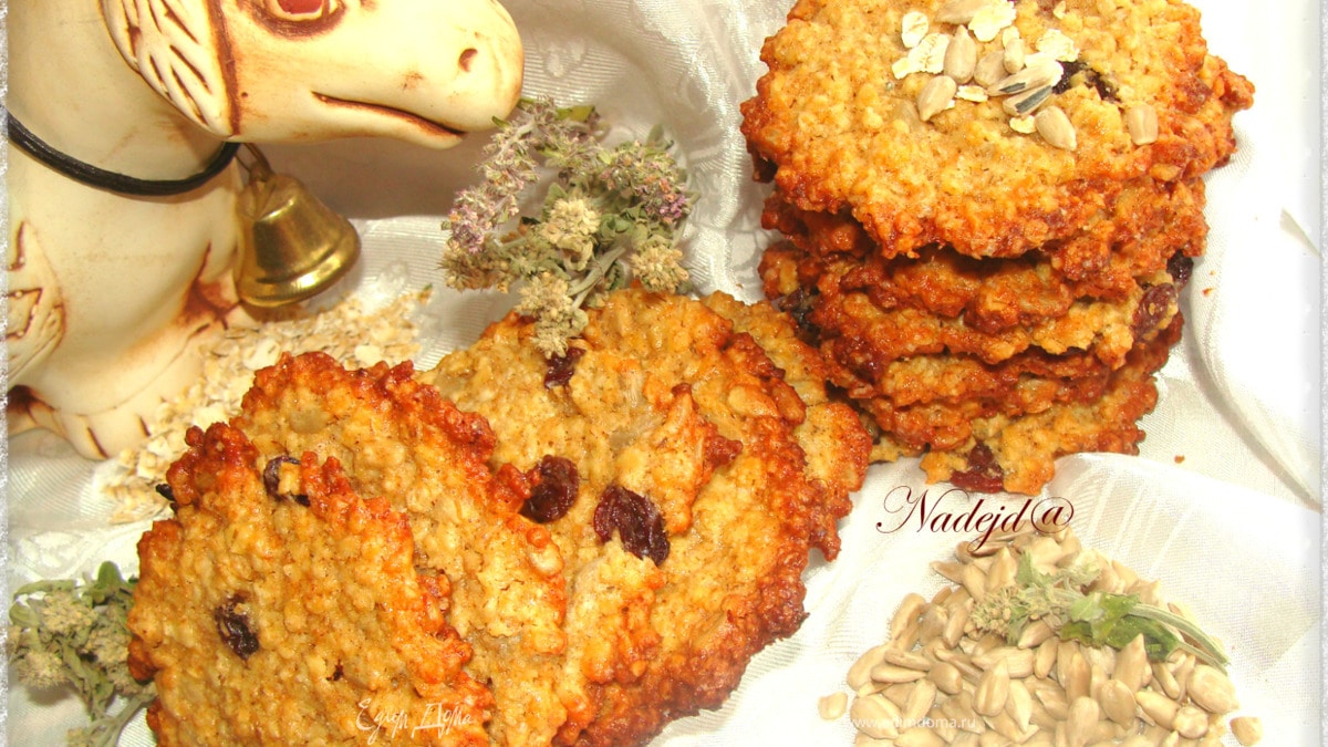Однажды попробовав такое печенье фабричного производства, подумала, что обязательно испеку такое сама. С тех пор немало вариантов этого рецепта я испытала, но этот мне показался самым удачным и сбалансированным. Печенье получается хрустящим, немного напоминает мягкий грильяж. Использование цельной муки, овсяных хлопьев, семян подсолнечника и изюма подарит ощущение сытости надолго. Можно частитчно заменить овсяные хлопья на овсяные отруби, тогда пользы будет еще больше. Количество сахара я уменьшила почти в два раза. Такие печеньки хороши на завтрак вместо любимой каши! ![]()