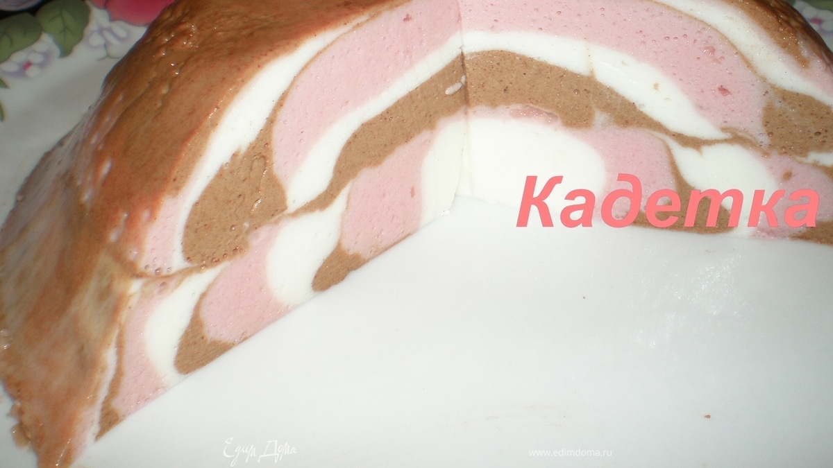 - Шаг 1Желатин замочить в 150 мл холодной воды и оставить на 15 - 20 минут. В сметану добавить сахарную пудру, перемешать. Желатин довести до кипения, но не кипятить. Охладить. Разделить сметанную смесь на три части. Разделить остывший желатин на 3 части. В одну положить ванильный сахар, в другую какао, и в третью - вишневый сок. В каждую влить желатин. Перемешать. Каждая смесь должна быть примерно одинаковой консистенции. Для этого по надобности можно добавить загуститель для сливок. Взять форму и наливать по очереди строго в середину по 4 ст.л. смеси - кофейную, вишневую и ванильную. Поставить в холодильник до застывания. Форму опустить на 10 секунд в горячую воду, так, чтобы вода не попала в желе и перевернуть на блюдо.
