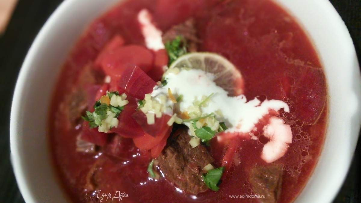 Суп-гуляш со свеклой и гремолатой в азиатском стиле
