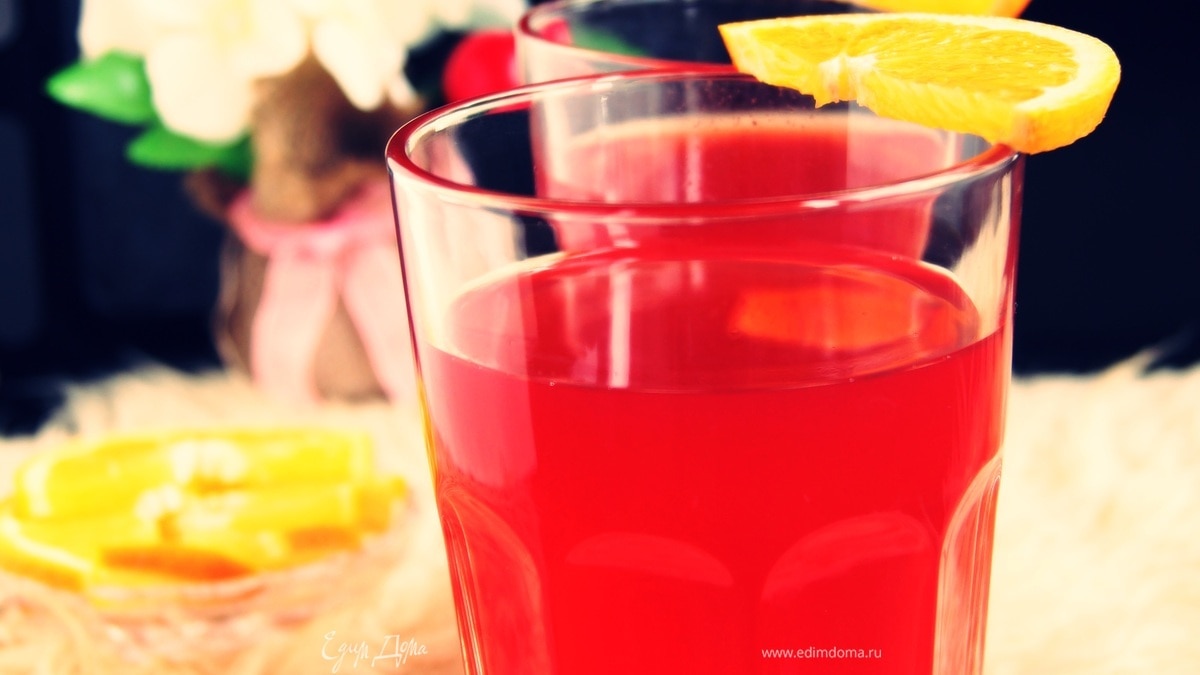 - Шаг 1Затем цедру достать, влить апельсиновый и ягодный соки. Довести до кипения, но не кипятить. Оставить в кастрюле под плотной крышкой минут на 15, настояться.