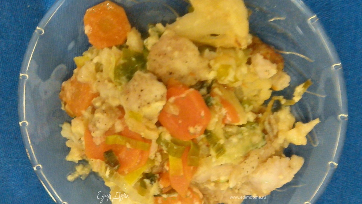- Шаг 6В блюдо для запекания выкладываем слоями: 1) Рыба; 2) Лимон; 3) Лук-порей; 4) Морковь; 5) Цветная капуста. Все это заливаем заливкой и запекаем в духовке на среднем огне до готовности заливки рыба очень быстро готовится, а овощи все уже готовы)! p.s.: можно сверху посыпать тертым сыром и смазать майонезом, тоже будет очень вкусно, но, более калорийно! Очень вкусная запеканка, тает во рту! Приятного аппетита!