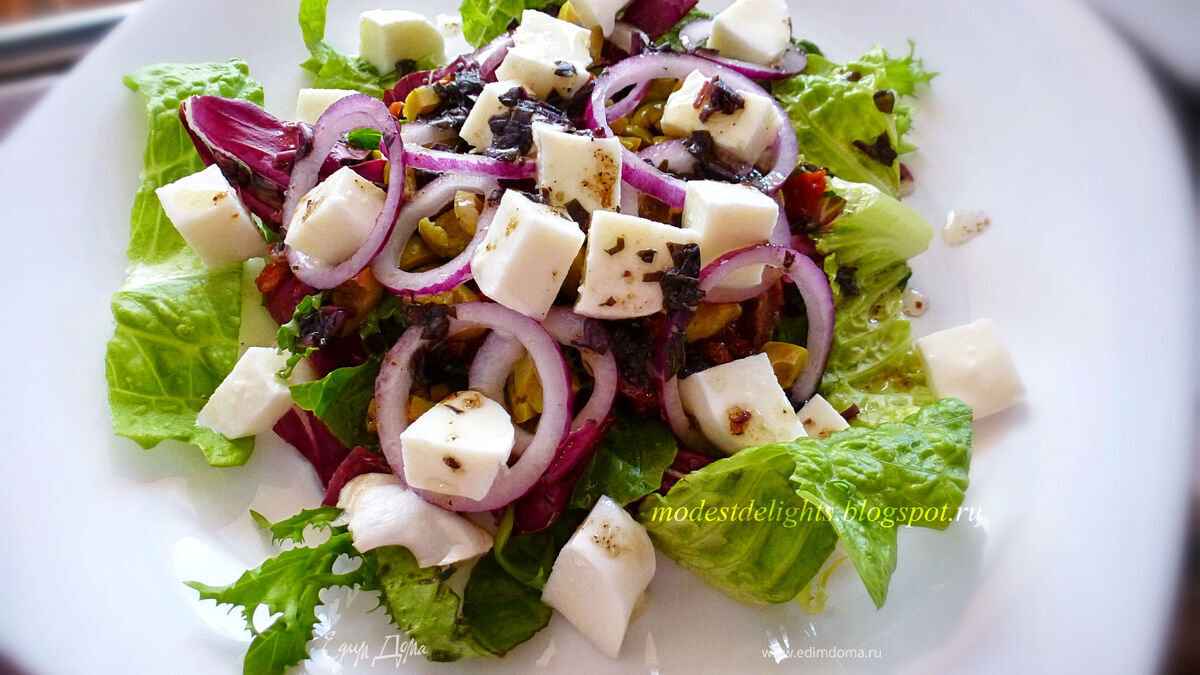Салат с вялеными помидорами и моцареллой