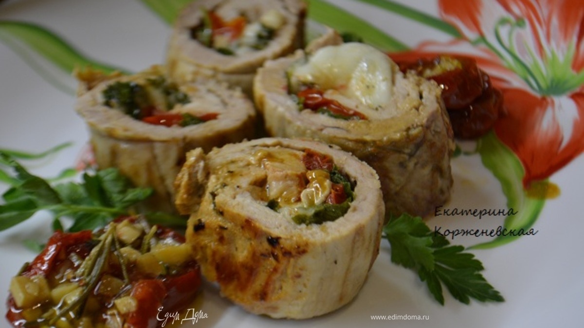 Это блюдо будет украшением любого стола! Идеальное итальянское сочетание:томаты,моцарелла и базилик. И все это завернуто в сочное мясо.Невозможно устоять!