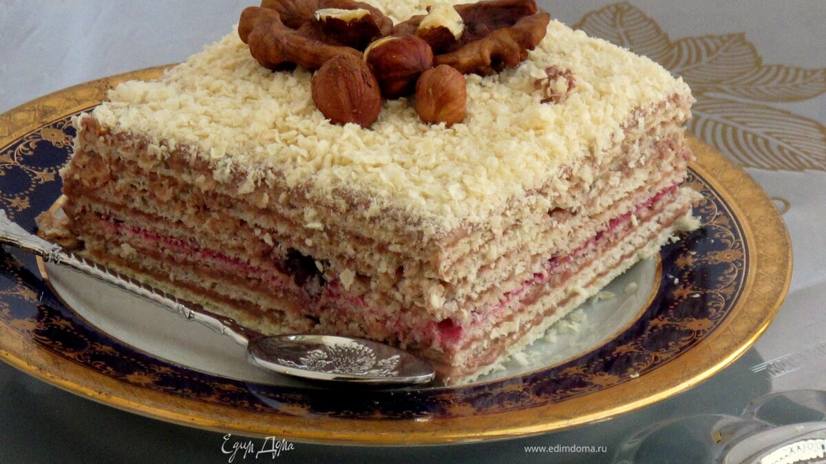 Украшаем орехами или вафельными трубочками. Приятного аппетита. Торт хорошо режется и не размокает. Особенно вкусен он на следующий день после приготовления.