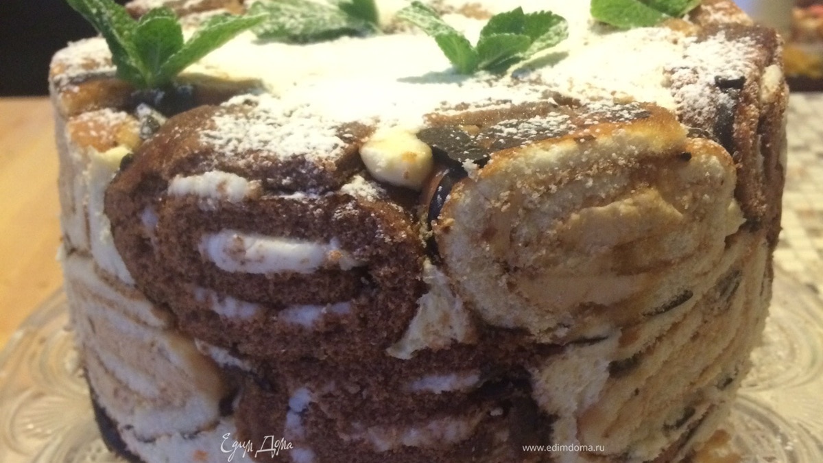 Выкладываем кружки рулетов в шахматном порядке и ОБЯЗАТЕЛЬНО обильно сбрызгиваем их или ликером, или Марсалой, или безалкогольным соком. Это очень важный шаг:) - Шаг 7